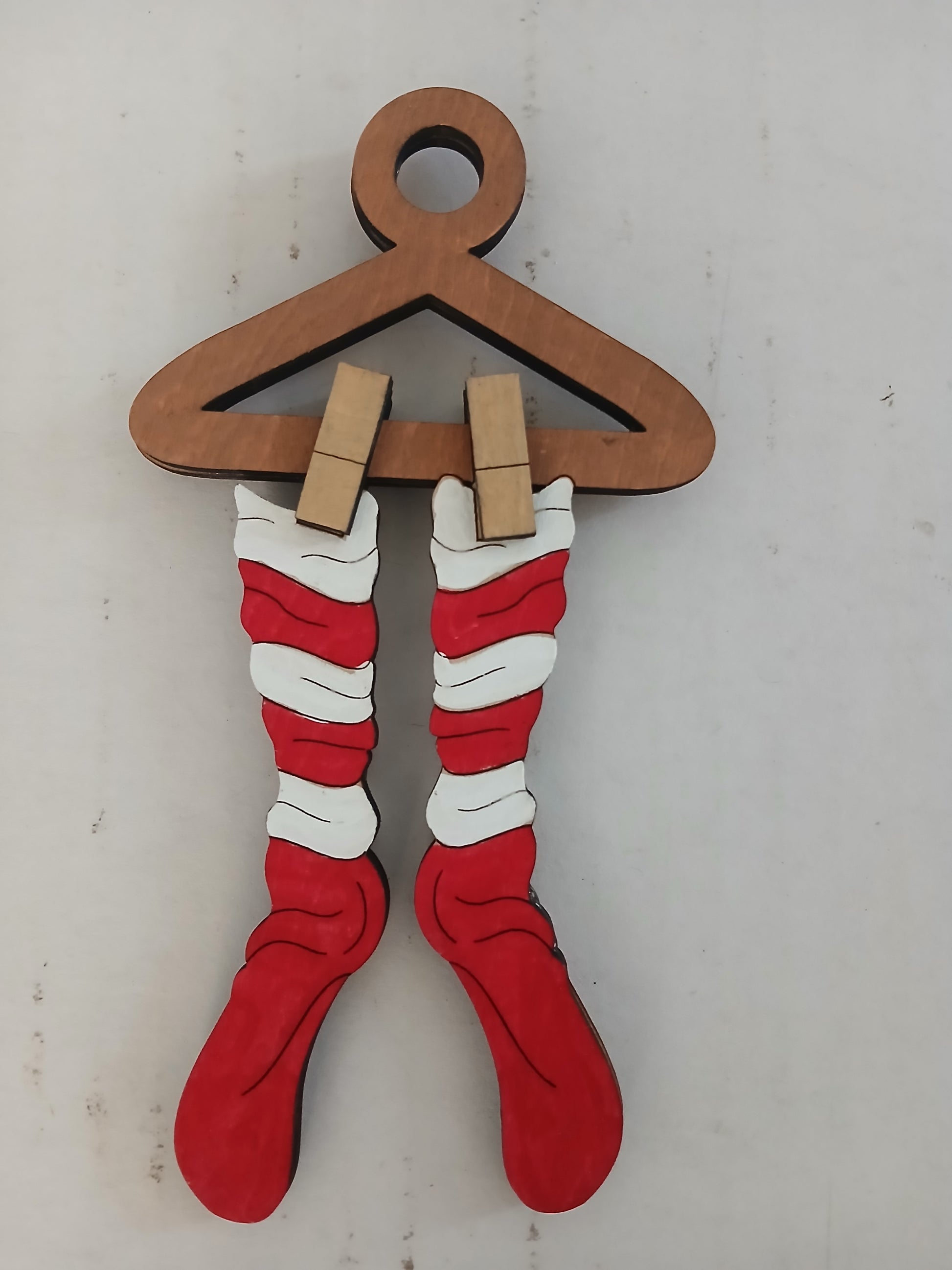 Santa absolutely adores his festive striped socks! This charming ornament features intricate laser-cut and hand-etched details, beautifully finished with hand-painted accents. Part of the exclusive 7-piece Claus Collection, each piece showcases the creative artistry of Giddy Ups Studio. A delightful addition to any holiday décor that celebrates the jolly spirit of the season with whimsy and craftsmanship.